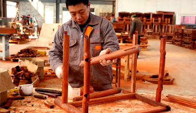 流程二木工工序 板材干燥完成后,就可以進(jìn)入正式的制作工序了。這一步是紅木家具制作最主要的步驟,也就是紅木家具制作廠家所說的木工工序。